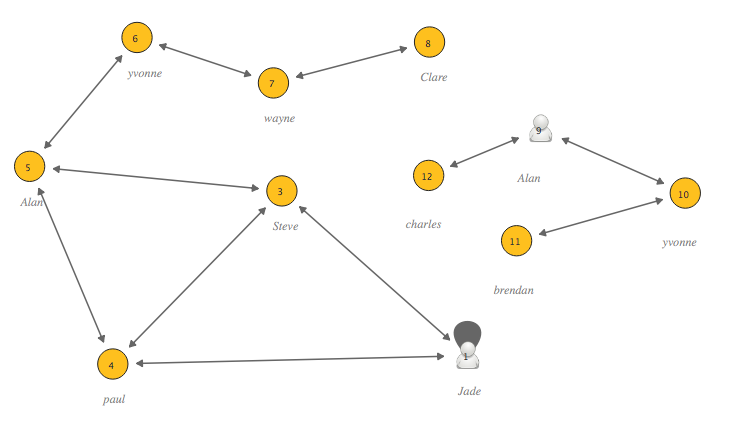 I haven’t found all the quirks yet but I did manage to produce a representation of a discussion from week 4. I was a little confused as to how to present Jade’s second post which is a reply to her own thread starter it shows as a kind of loop here: