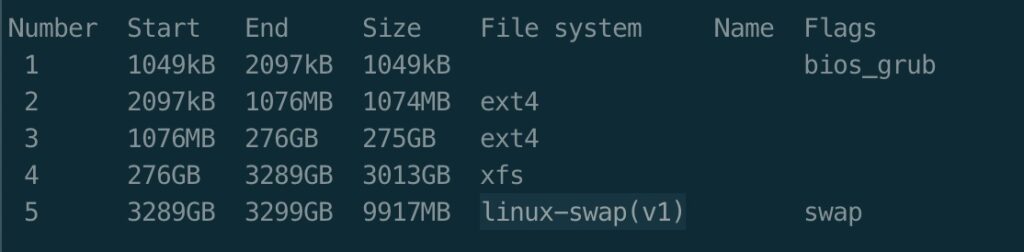 I switched off the physical swap partition because we don’t need it and will delete it in the parted program altogether.
